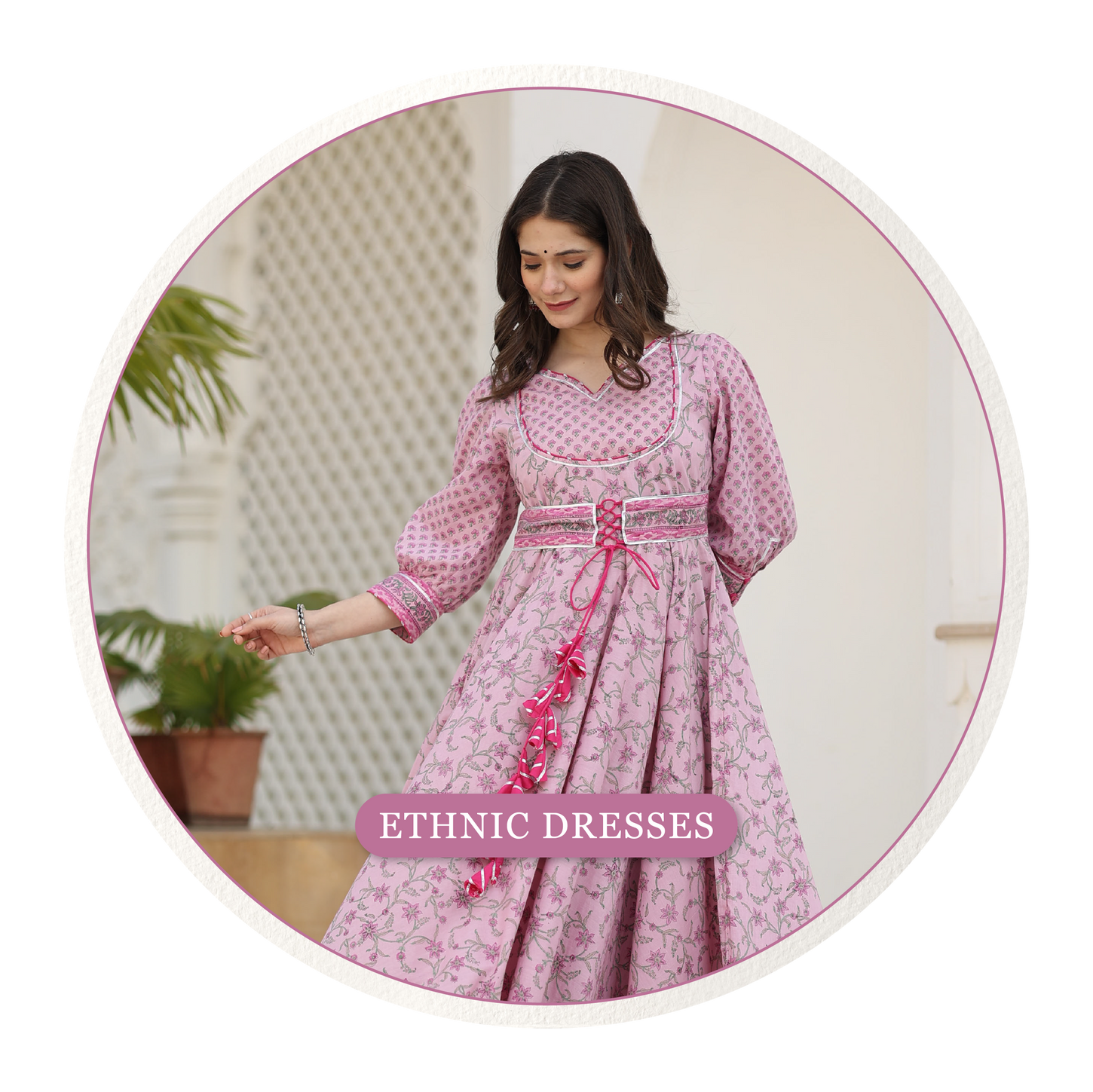 Women who are bored of the same lehenga and suits and want to get the Indian look with a modern twist. Ethnic dresses are the perfect pick for you. Ethnic dresses have become the most common outfit for modern women nowadays. It not only makes you stylish but gives you the utmost comfort throughout the day. There are various colours, designs and prints one can get in Ethnic dresses. This website doesn't compromise on the fabric quality. From bold to light and pastel every hue are available that will make you confused about what to choose. Get the graceful and elegant look by investing in women Indian wear online from the Jannat website