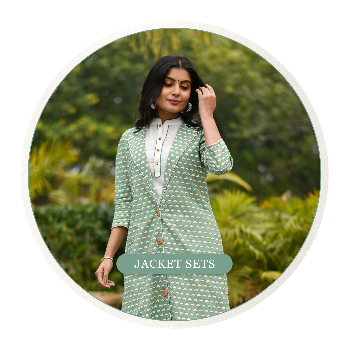 Give a modern twist to your ethnic wear by wearing unique Jacket sets from the amazing website. Try something new by creating a different look. Add this to your ethnic collection by choosing Indian ethnic wear online from the Jannat website.
