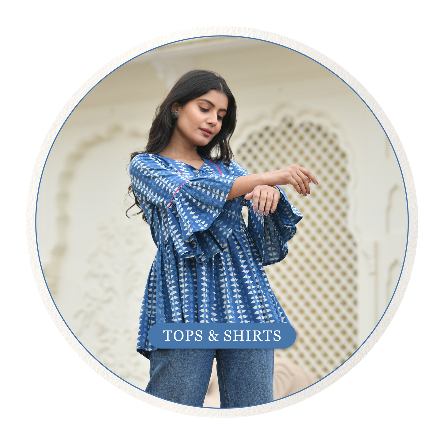 Don't limit yourself to an indo-western top and shirts. Try to wear an ethnic top & shirt that go well with your denim jeans and leggings. The sleeves like ruffles, peplum style, beautiful prints and silhouettes give an ethnic look yet modern touch to these tops and shirts.