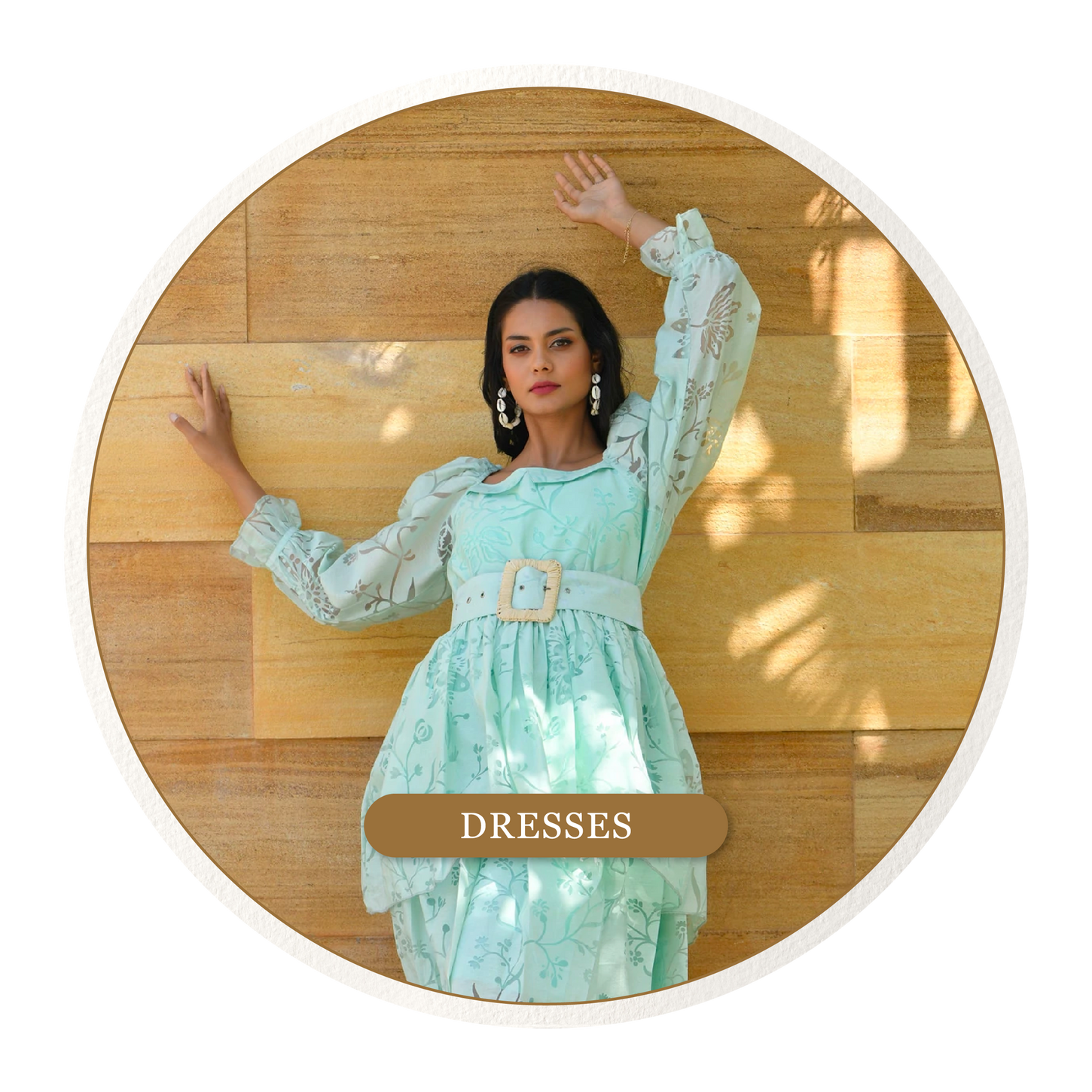 Jannat has chic dresses like tie-dyed dresses, Floral printed dresses, schiffli slip dresses, ombre dresses, embroidered dresses, maxi dresses, off-shoulder dresses, pleated dresses, and halter neck dresses, midi dresses, gathered dresses, peplum dresses and so on.