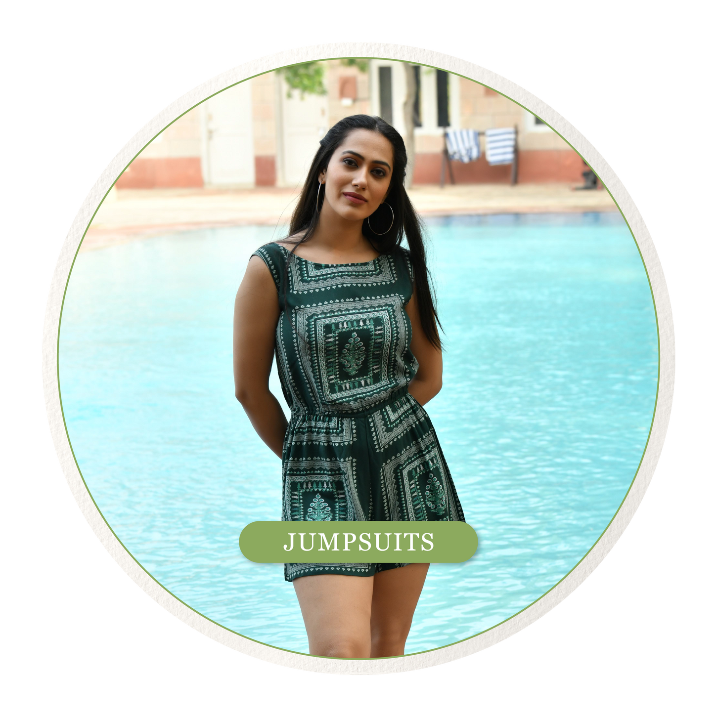 Women can find variety in jumpsuits whether it's a cocktail event or any casual meeting, you can carry this jumpsuit in a style by teaming it with a piece of chic jewellery and fancy footwear. Jannat has jumpsuits that are made in a premium quality fabric such as Cotton, Rayon, and Viscose that makes you wear the attire to the longer time without any discomfort.